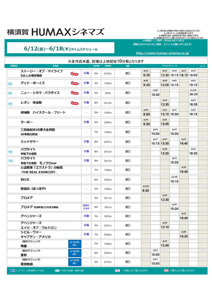 横須賀humaxシネマズ در توییتر 横須賀humaxシネマズ 上映スケジュール 6 12 金 6 18 木 New ストーリー オブ マイライフ わたしの若草物語 グッド ボーイズ ニュー シネマ パラダイス レオン 完全版 6 18 木 終了作品 晩春 麦秋